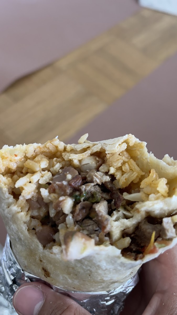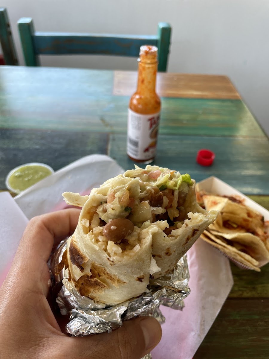 Yummy yummy in my tummy!! BOMB salsas. The green is mild and addicting, the red is spicy but so tasty. Tons of serve yourself salsa and chips. Got my typical super vegi burrito and it was a little bland (forgot to ask for black beans, it comes with pinto)... but once you add the salsas holy moly you go to another world. My husband got the carne asada and also really enjoyed it. We'll come back!